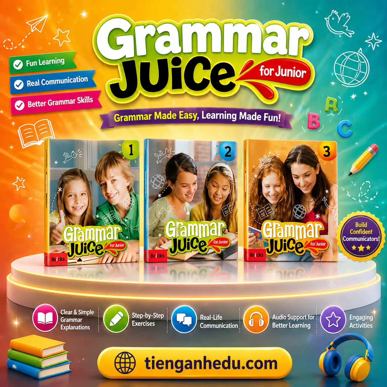 The Grammar Juice for Junior is a fun, modern English grammar course designed for young learners. Using real-life images, simple explanations, and interactive exercises, the series helps children understand and use grammar naturally in everyday communication.