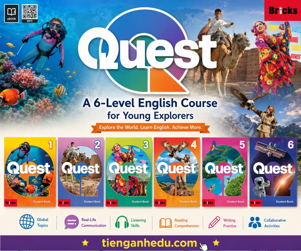 The Quest series by Bricks Education is a modern English learning program that takes students on an exciting journey around the world. Each level introduces learners to different cultures, environments, and real-life situations, making English both meaningful and fun.